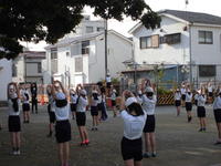素敵な朝の海岸で、朝礼(ラジオ体操等)を行いました。