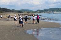 波打ち際で海を感じながら、桜貝など貝殻ハッピーセットを見つけるため、みんなで協力してさがしていました。