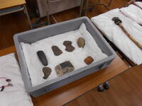 視聴覚室内に土器等を展示し、実物に触れながら学ぶことができました。