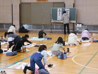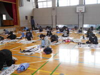 体育館内はストーブを付けていましたが、広さのため寒さを少し辛抱しながらの書きぞめとなりました。