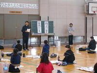 川口市救急課の方を講師に迎え、応急手当の重要性、胸骨圧迫の方法とAEDの使い方を人形を使いながら教えていただきました。専門の方から直接教えていただく、よい機会となりました。