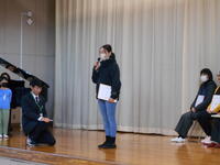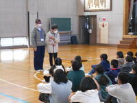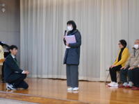 書写ボランティア、図書ボランティア、読み聞かせボランティア、交通指導ボランティアの代表者様に子ども達からお礼のお手紙を渡しました。各代表の方からも一言ずつお話をしていただきました。
